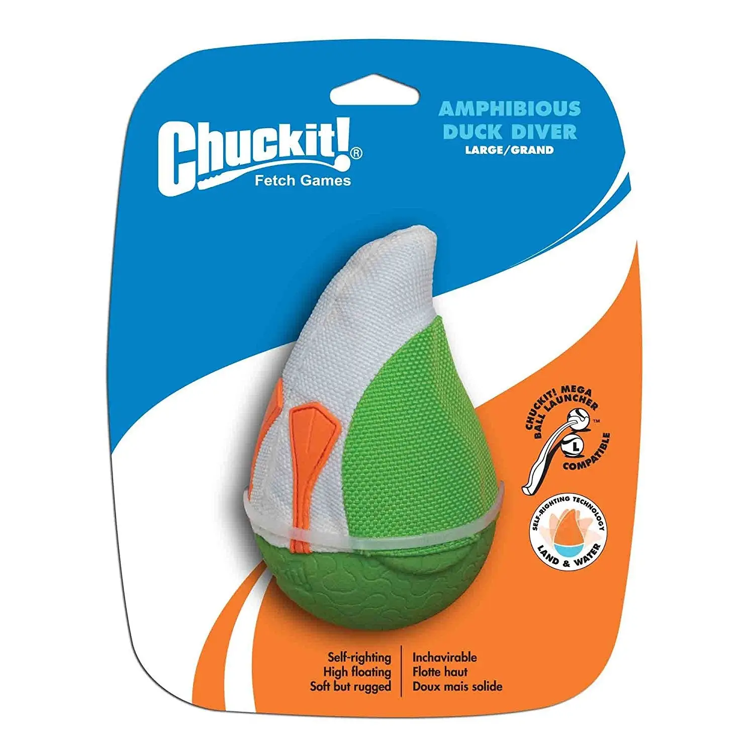 Pato buceador flotante, de caucho natural forrado de nylon muy resistente y blando, gran capacidad para flotar.
